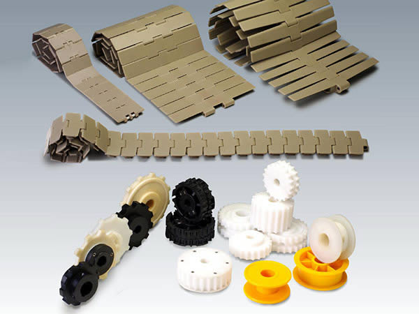 We sell a variety of conveyor parts and plastic components, such as conveyor chains, conveyor sprockets, corner tracks, parts, guide strips and more. We can also provide custom conveyor spare parts.
