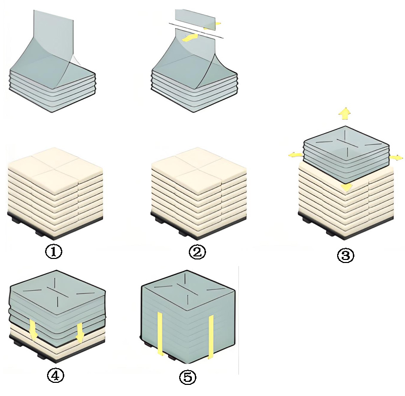 The stretch hood machine is designed to package goods using stretch film. During operation, as the goods enter the machine’s working area, it calculates the required film length based on the stacking height and pallet dimensions. Through its stretching, sealing, cutting, and hooding mechanisms, the film is applied from top to bottom. Leveraging the film’s elasticity and plasticity, the machine achieves a tight, five-sided wrap around the goods. The resulting package offers excellent water and moisture resistance, puncture protection, strong holding force, and stable stacking, while maintaining clear visibility of the contents. This technology is widely used in industries such as chemicals, building materials, home appliances, and animal feed.